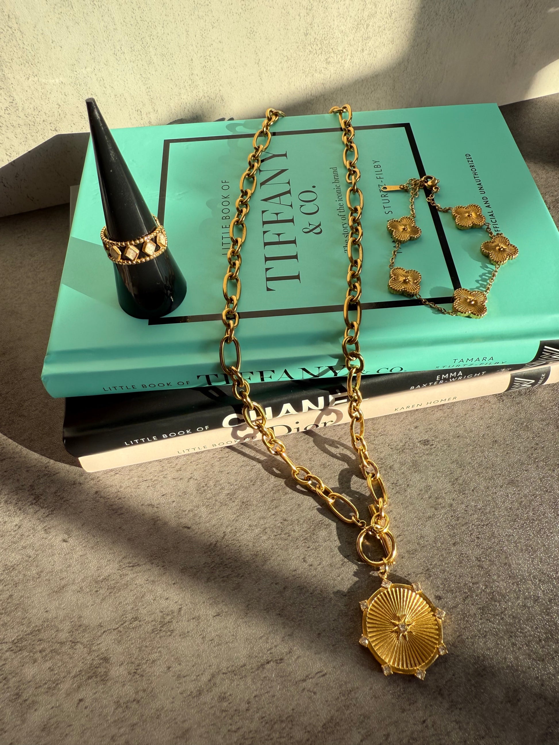 ✨Necklace: chunky Link train with a radiant sun burst pendant