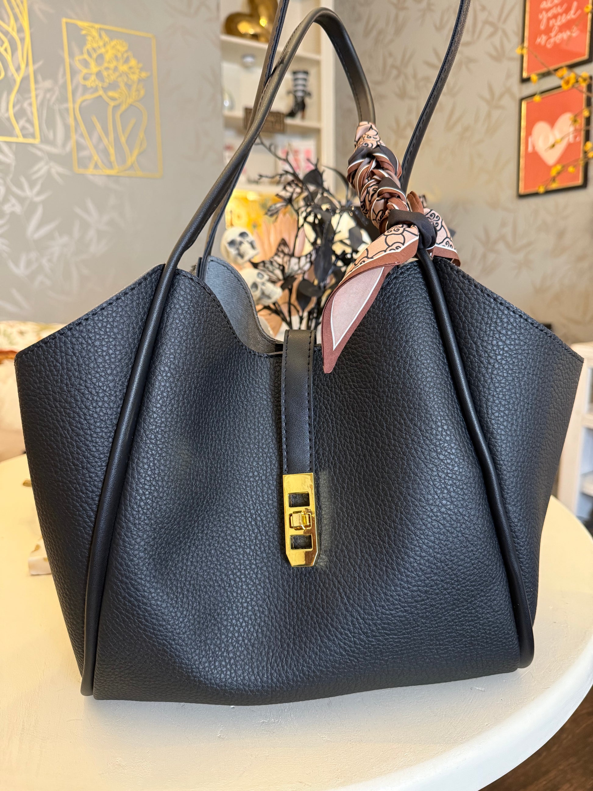 Golden Lock Tote -Black